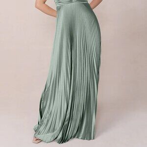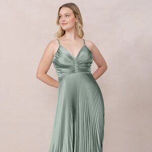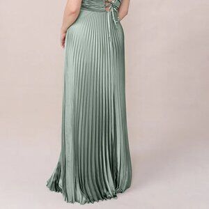 This style is crafted from a pleated satin fabric. This style runs true to dress size, but if in between sizes, size up as our pleated satin does not have stretch. This style is offered in four length options: 40", 43", 46", 51".