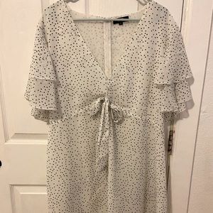3X, plus size, white with black polka dots, lightweight, flowy, summer dress