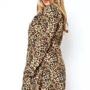Plus Size Women Leopard Babe Notch Collar Zip Up
