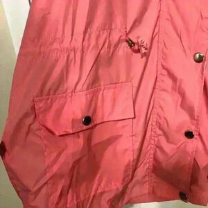 New with tags Plus Size Women Salmon Pink Windproof Jacket Removable Hood Zip & Snaps Size XXL. Blue and White Striped Contrasting color. Drawstring waist and hood.