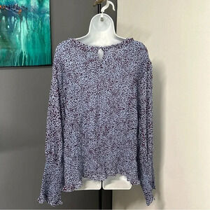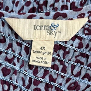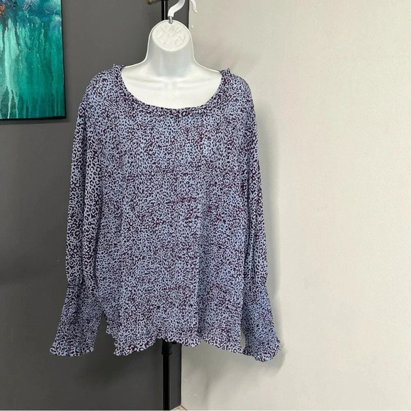 Plus Size 4X (28W-30W) Long Sleeve Animal Print Tunic Top Smocked Keyhole