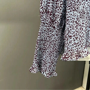 This is a pretty & feminine animal print smocked front/back and cuff blouse