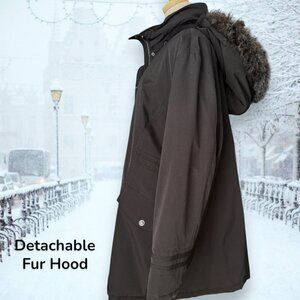 Croft & Barrow Womens Heavy Puffer Quilt Lined Fur Hooded Parka Ski Winter Jacket.