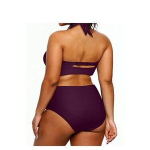 Plus Size Women's Two Piece Halter Bikini Tummy Control Bathing Suit-Maroon 20W