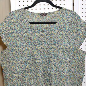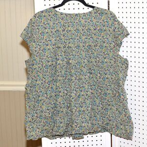 Plus Size XXL Old Navy Ditsy Floral Cotton Pleated Short Cap Sleeve Blouse Top