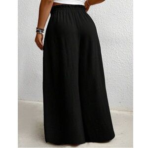 Plus Solid High Waisted Lightweight Wide leg Pants