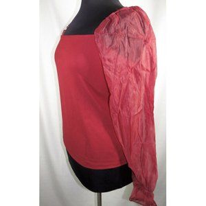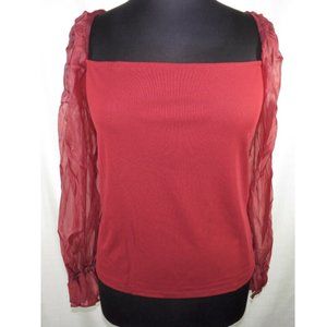 Plus Sz 26/28 Eloquii Red Long Organza Sleeve Top, NWT