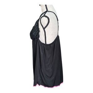 Plus Sz Passion Forever 2X Black Lace Flyaway Babydoll Lingerie Pink Bow Nightie