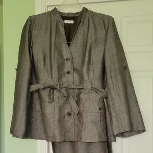 Plus & Tall Calvin Klein Linen Safari Pantsuit Collarless