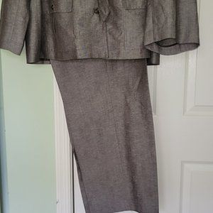 Women's Belted Safari Jacket Pantsuit, Plus & Tall Size 24W. The Color is Taupe and the pants are long enough for a 6ft tall person.
