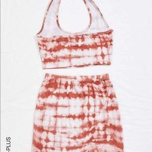 Plus Tie Dye Halter Top & Slit Hem Skirt