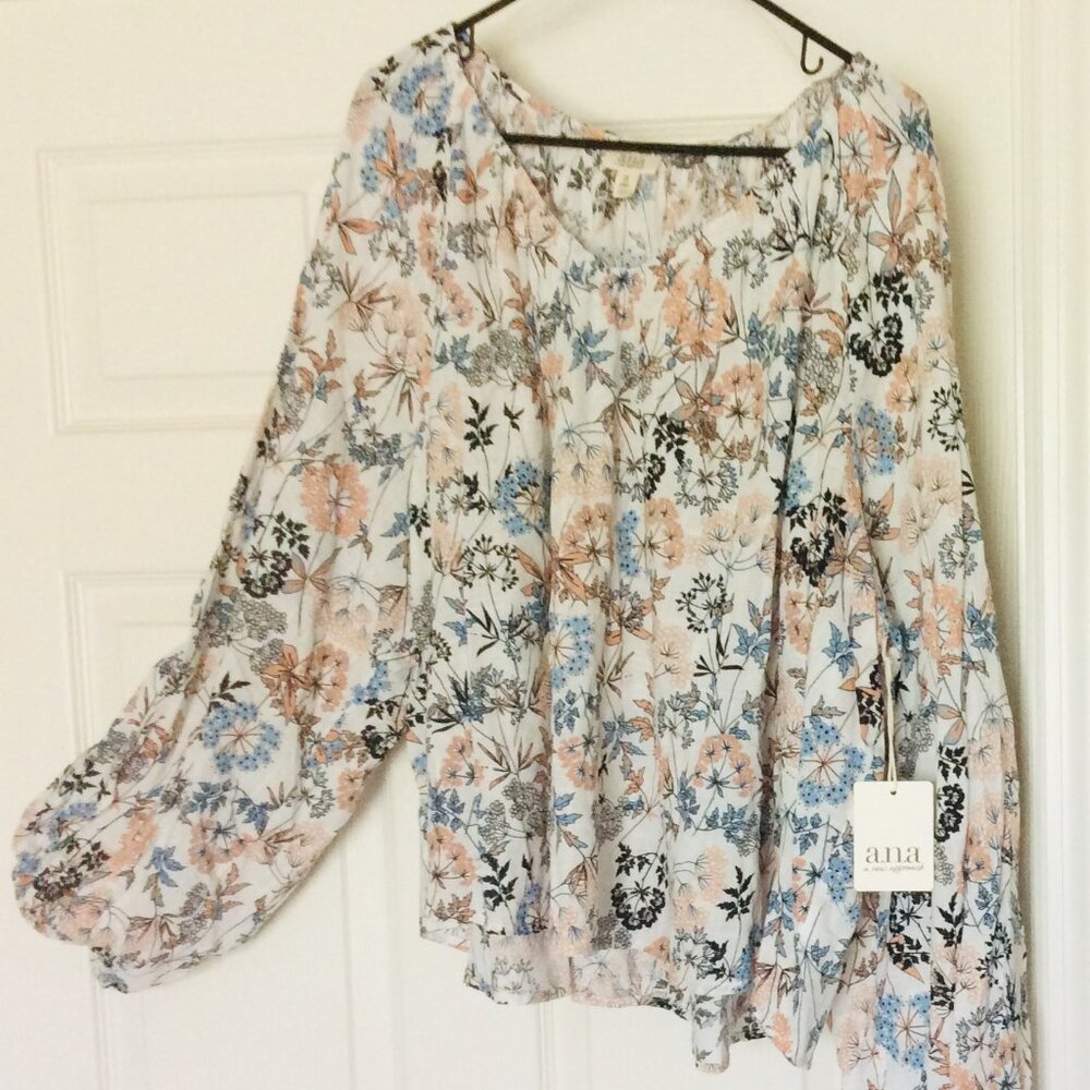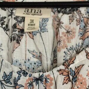 a.n.a. floral top 3X woman cotton and rayon New never worn. Long full sleeve with elastic.