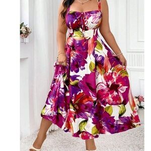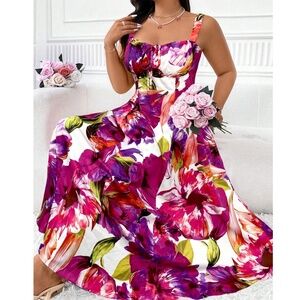 Plus Vibrant Floral Print Stretchy Waist Dress