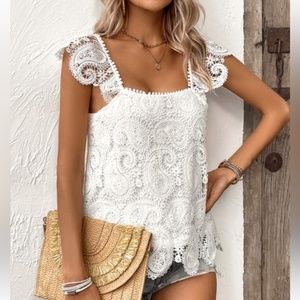 Plus White Paisley Lace Crochet Ruffle Tank Top