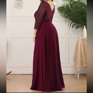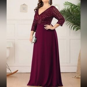 Plus sequin 3/4 sleeve Formal Prom Evening Party Wedding Dress