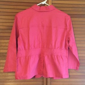 @slhild38 I put up a pic of the back. It's a coral color. Also, before I accept you offer on the other shirt, if you bundle these together you would only pay one shipping price. Let me know if you'd rather do that. 🌹