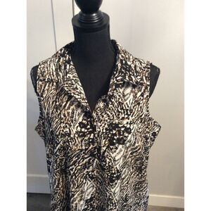 Plus size 1X animal print Sleeveless Collared Dress Pocket Button Up Front