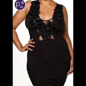 Ruffled front low cut mini. Sheer back little black dress. Pp friendly. Email for more info.