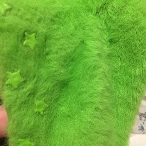 Worn once, slightly discolored on bottom. Too big for me. Queen size. So furry and soft and amazing, I couldn’t throw away! Grippy bottom.