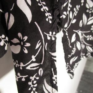 St John's plus sz 2X long sleeved blouse, color is black with white flowers, button down front and button cuffs on sleeves, 5" slit on each side at bottom. Measures 26" pit to pit, 32" shoulder to hem. Pre-owned but very gently used, no rips or stains. ( Z-15)