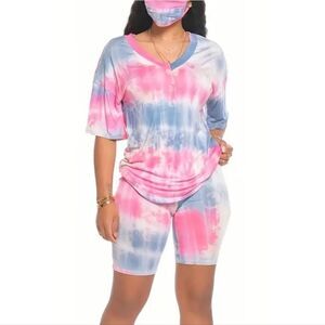 Plus Size All Over Print Casual Top & High Waist Biker Shorts Set, Women's Plus Stretchy Co-ords Two Pieces, Women's Plus Size Two Piece Set