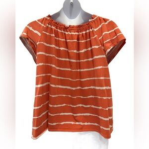 Stylish orange striped top for women. Perfect for casual outings. Comfortable and chic. Great Condition. Size 2x