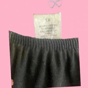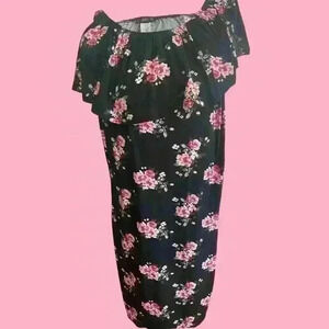 Plus size black dress with flower print. Size 1X, 92% polyester, 8% spandex, and form fitting. Good condition