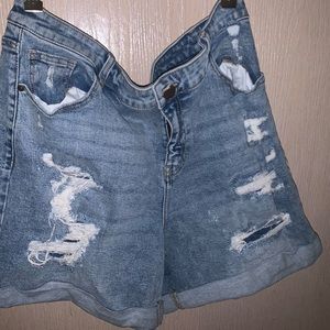 Clothes bundle: includes a size XL dress. 3 pair of Ann Taylor trouser pants, all a size 16. A XL sparkle gold and black skirt. A size 18 denim shorts. And A size L orange shirt.