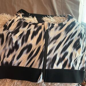 1x 3xl rise front close/zip up high impact sports bra by LuLaRoe rise (msrp 5995) black blur blue leopard/cheetah/animal print blur