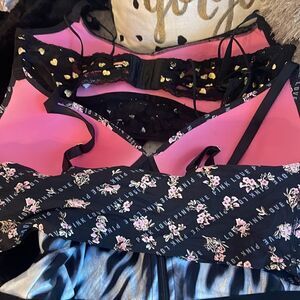 2X by Victoria Secret/VS pink black w/gold metallic foil hearts nwt black w/logo & floral print nwot both sz XXL both longline lace lined lightly padded push up