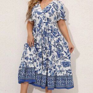 Plus size floral print maxi dress