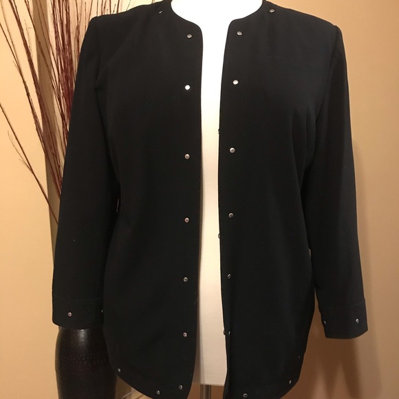Collarless long sleeve jacket with silver nailhead detail. Fully lined.