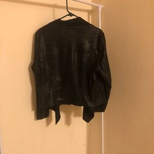 Black leather jacket, it does have zippers on each side it is very comfortable. I only wore this once.
