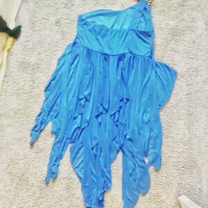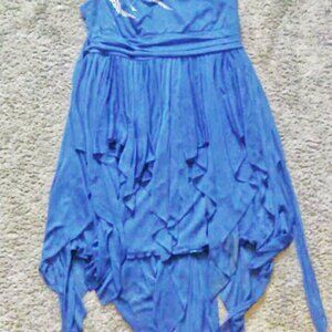 Super comfortable plus size formal dress. Its not a royal blue , I'd consider it an ocean blue or slight tealish hue to the blue fabric. The dress measures 35 inches from under the arm to the bottom and the width measures 19 inches. Super stretchy fabric. Brand: Debs Size: 2X