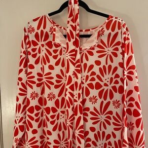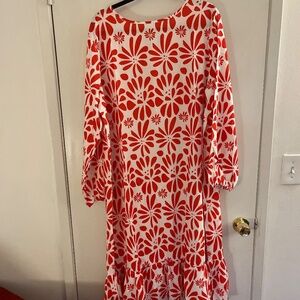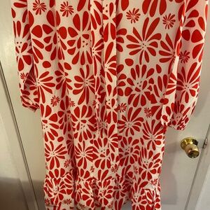 Plus size red and white floral dress with belt size 3xl