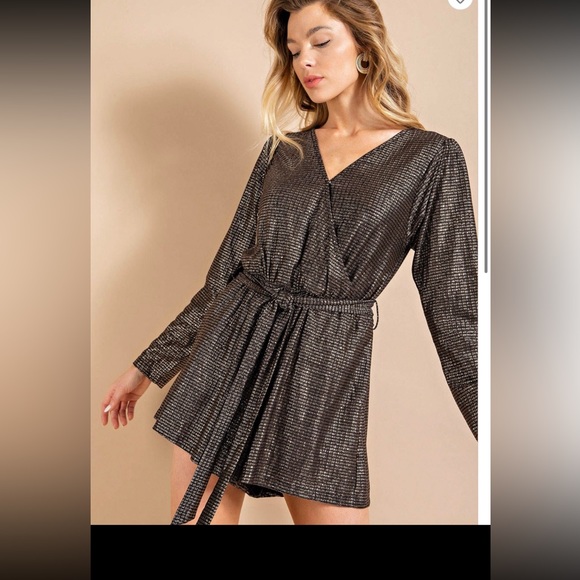 Brand new black and gold sparkly plus size romper with tie around waist. Brand new from a boutique that is closing