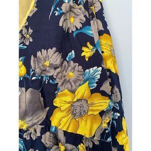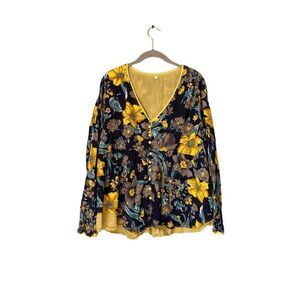 Plus size women’s floral blue and yellow tiered ruffle hem baby doll top