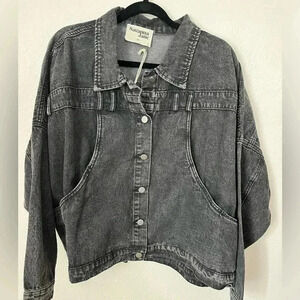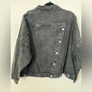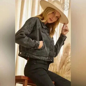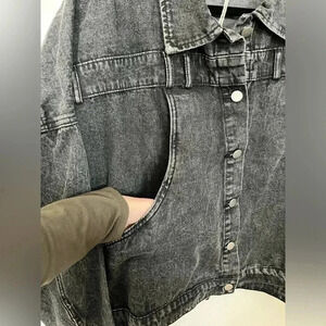 Plus sz asymmetrical placket black denim wash jacket, crop/boxy cute details NWT