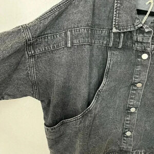 Savanna one plus size, 80’s inspired, crop and boxy cut, black washed denim, asymmetrical button placket on the back, button detail at the waist, big front pockets and bet loop detail on the front, NWT