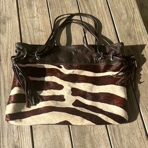 PlusBag Italy Zebra Haircalf Leather Western Tote shoulder bag Boho Cowgirl Chic