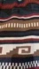 Colors are navy blue, white collar, Sweater back is geometric design in white, burgundy Knit, black and brown.