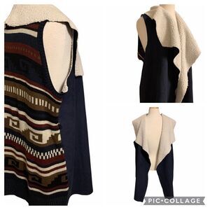 This very unique Almost Famous navy blue southwestern Shrug is 100% polyester.