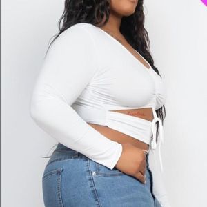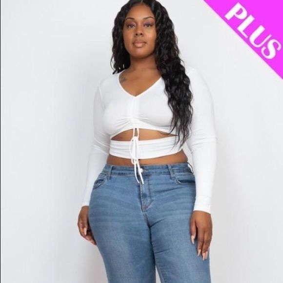 🔥Plus Size Drawstring Ruched Crop Top