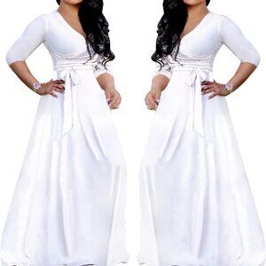 Plus-Size Maxi Dress Women African Summer 3/4 Sleeves Pockets V-Neck