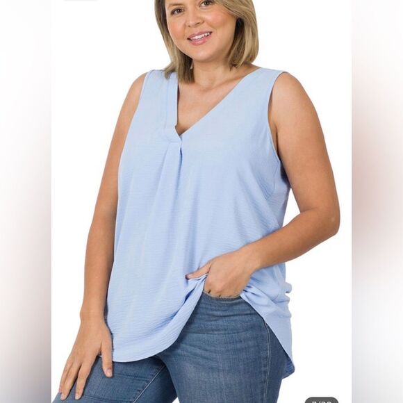 Cute plus size top for spring and summer. It could be casual or dress it up 100% polyester has a textured fabric. The back picture is just an example to show the back of the top. The front picture is the actual color. Spring Blue