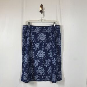 Plus size Jessica London blue denim flowered skirt. Size 14. Zips up in the back.