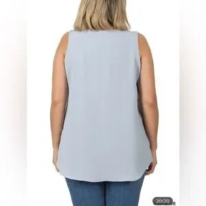 Cute plus size top for spring and summer. It could be casual or dress it up 100% polyester has a textured fabric. The back picture is just an example to show the back of the top. The front picture is the actual color.