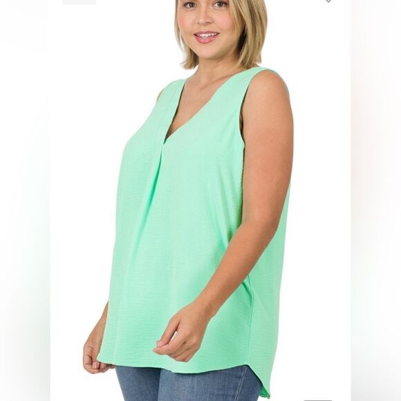 Cute plus size top for spring and summer. It could be casual or dress it up 100% polyester has a textured fabric. The back picture is just an example to show the back of the top. The front picture is the actual color. Mint green