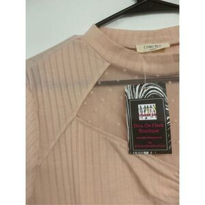Ladies super cute mauve pink colored knit plus size peep hole long sleeve, lace accent sweater. Excellent condition. Ladies size 2X. True to size.