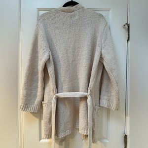 Plush Apparel Cozy Knit Cardigan, size S/M, worn twice, excellent condition. Cream color that is super versatile and warm! Includes tie belt and pockets.